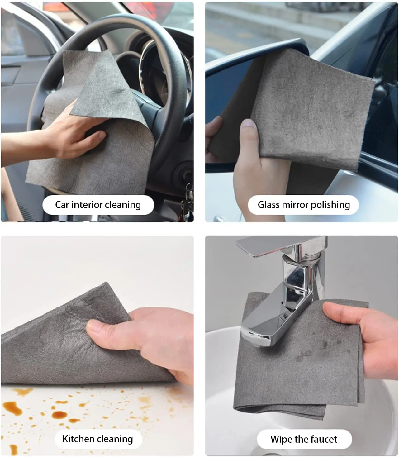 Our magic cloth is made of thick materials, Good water absorption,which will leave no traces and water stains after wiping. Same price but different quality !See the following figure for detailed evaluation!
